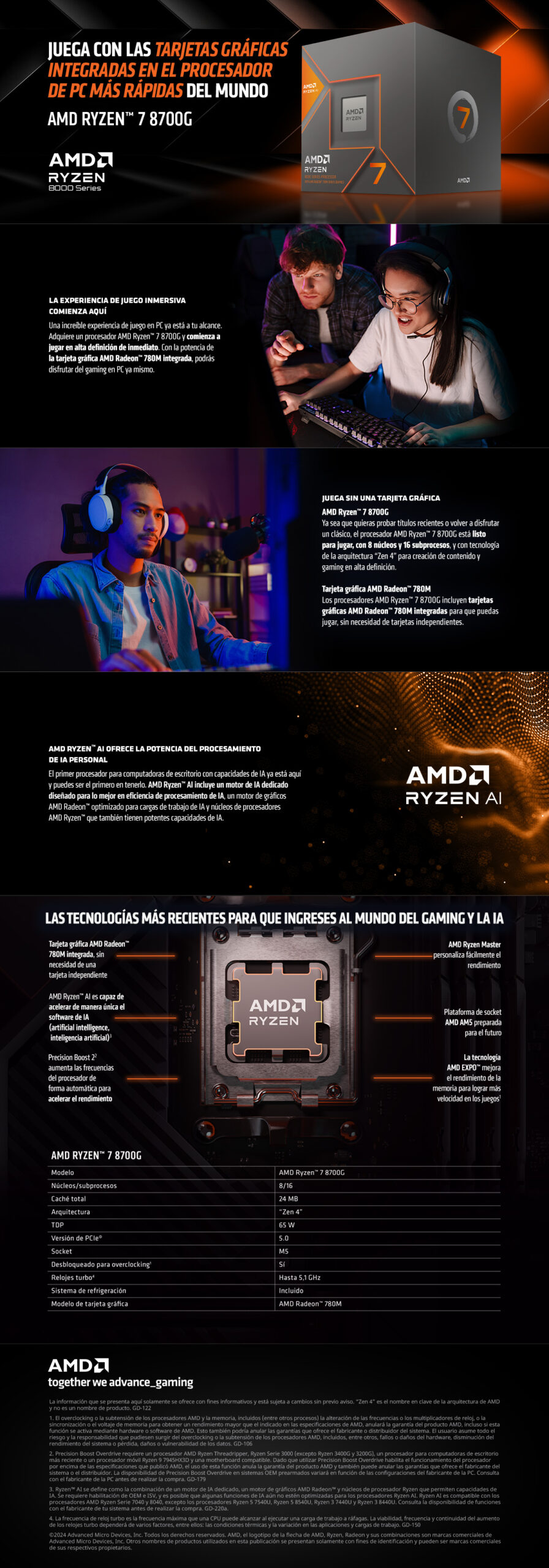 | PROCESADOR | AMD Ryzen™ 7 8700 G- |